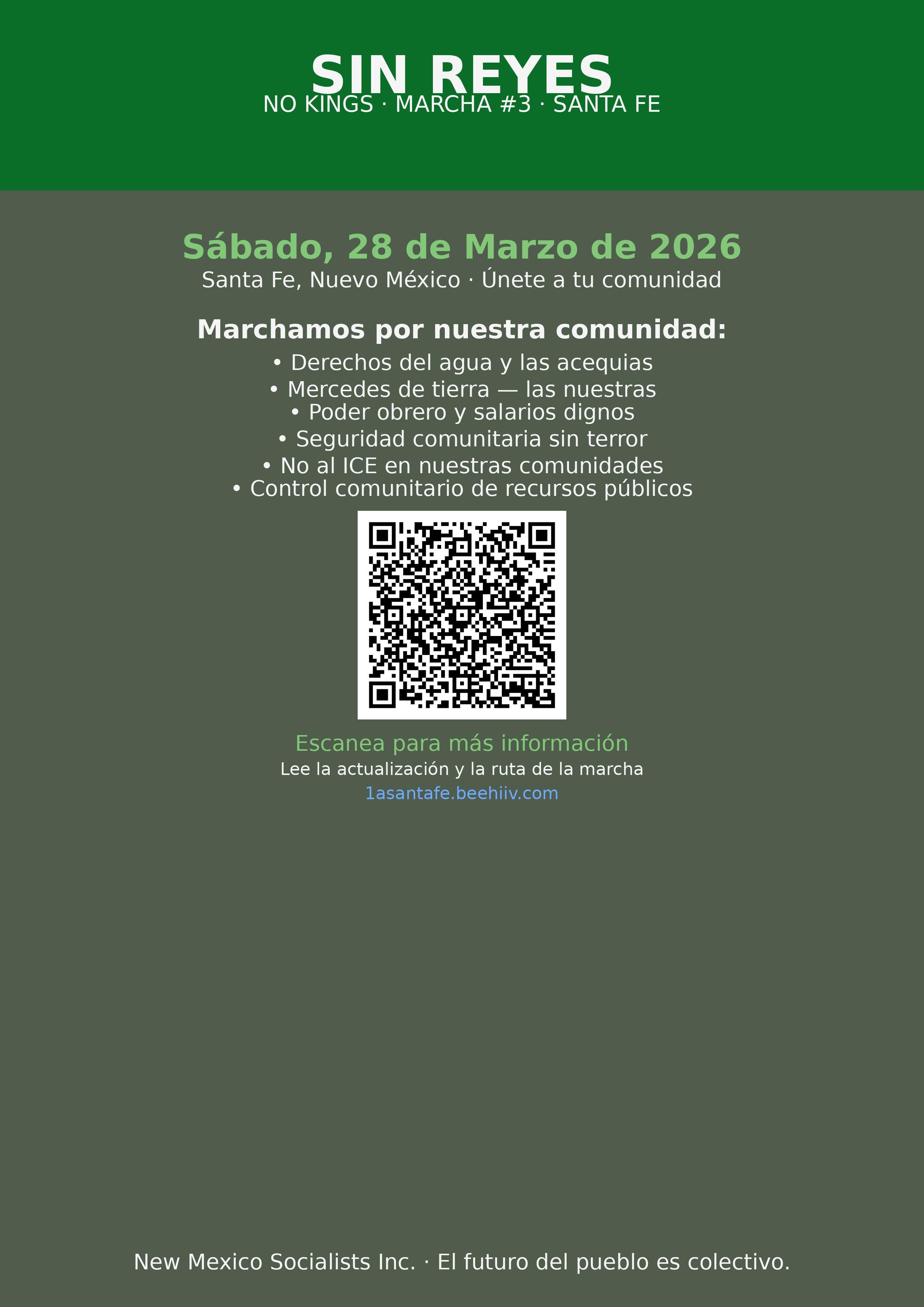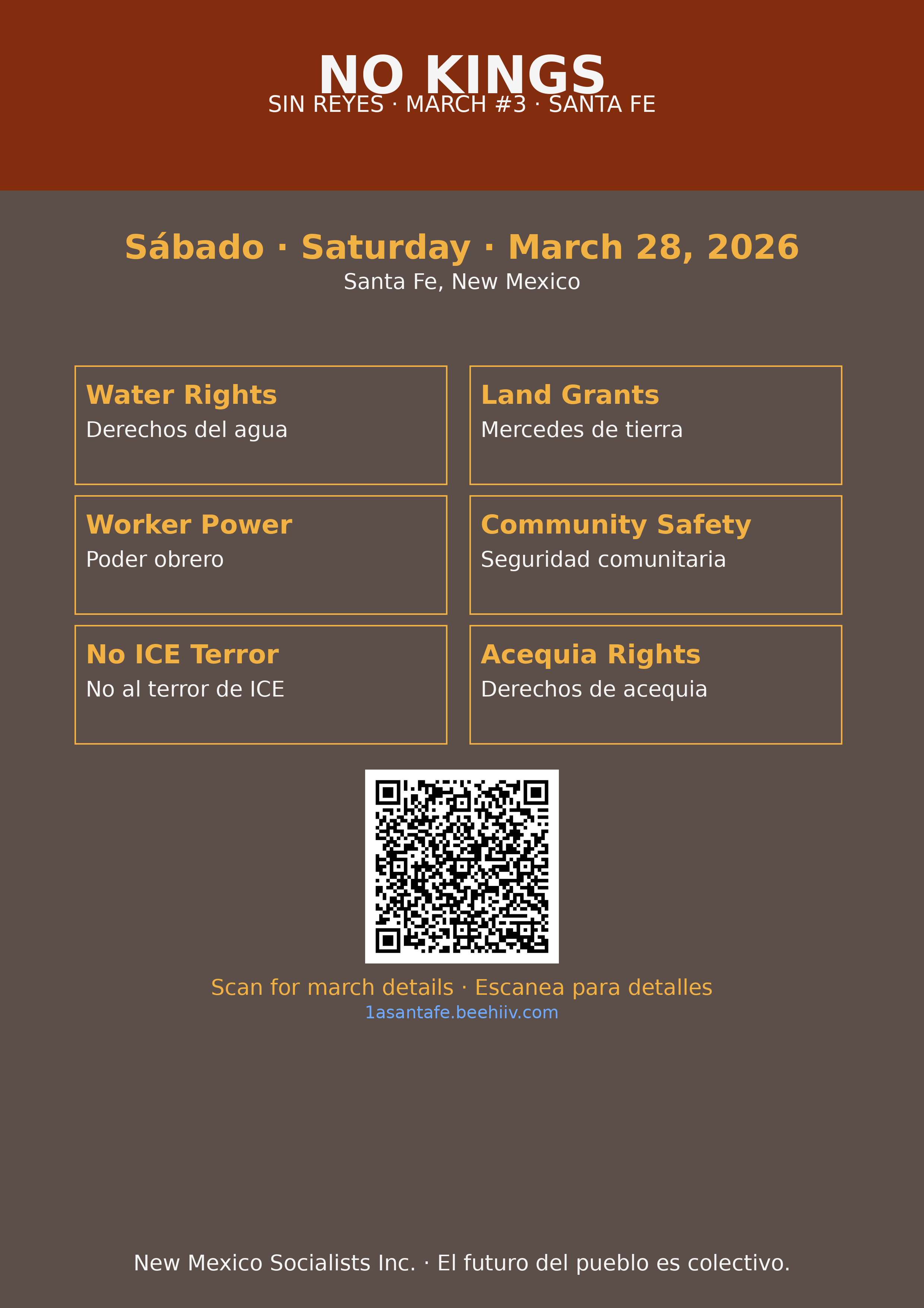 This page packages the Santa Fe march into a public-facing campaign page that works for QR scans, social sharing, bilingual outreach, and print distribution without depending on a rough email export.
